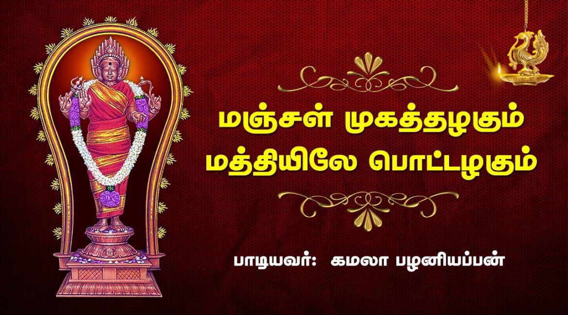 மஞ்சள் முகத்தழகும் பாடலை கேட்க 0:00 / 0:00 மஞ்சள் முகத்தழகும் மஞ்சள் முகத்தழகும் மத்தியிலே பொட்டழகும் - காரைக்குடி கொப்புடையம்மன் - பாடல் வரிகள் மஞ்சள் முகத்தழகும் மத்தியிலே பொட்டழகும்மங்களம் தருவதன்றோ மாணிக்க மூக்குத்தி முத்து பில்லாக்குமே மகிழ்வூட்டும் அலங்காரமே அஞ்சனம் தீட்டிய அம்புவில் விழிகளில் அகிலமே அடக்கமன்றோ அழகான காதினில் ஆடிடும் குண்டலம் அலைகடல் முத்து வகையோ தஞ்சமென வந்தவரை தாங்கிடும் கைகளில் தவழ்ந்திடும் தங்கவளையல் தங்கமென நெஞ்சிலே கொஞ்சிடும் மாலைகள் தாயவளின் பொற்குவியல்கள் கொஞ்சிடும் உதட்டிலே கூடிடும் புன்னகை கோடிக்கு கோடி பெறுமே குறையாத...